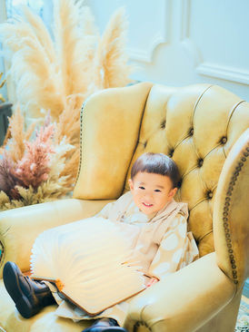 3歳の男の子の七五三の撮影は、スタジオ全体を使って、遊びながら笑顔になれるように撮影をしていきます。